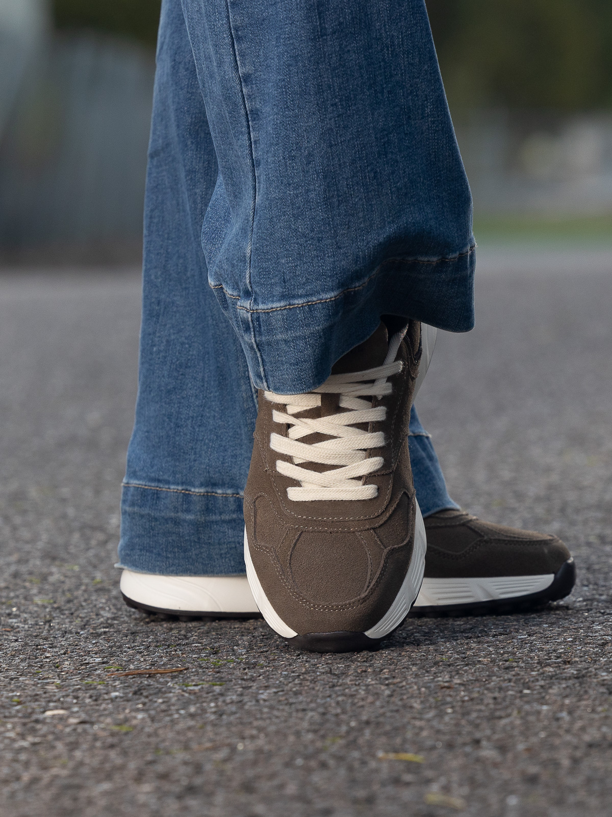 Gi antrekket et sporty og sofistikert løft med Le Praz fra Jean Paul. Denne damesneakeren kombinerer moderne komfort med et tidløst uttrykk, laget i mykt semsket skinn som gir en elegant og “brukt” finish med karakter.