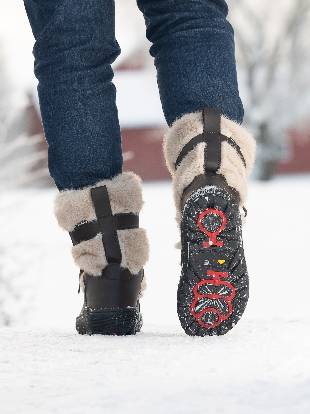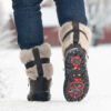 Den store stjernen er den smarte undersålen med vendbare pigger – et genialt system som lar deg vri frem metallpiggene når underlaget er glatt, og vende dem inn igjen når du går innendørs eller på asfalt. Med ett enkelt grep får du optimalt feste – uansett føre!