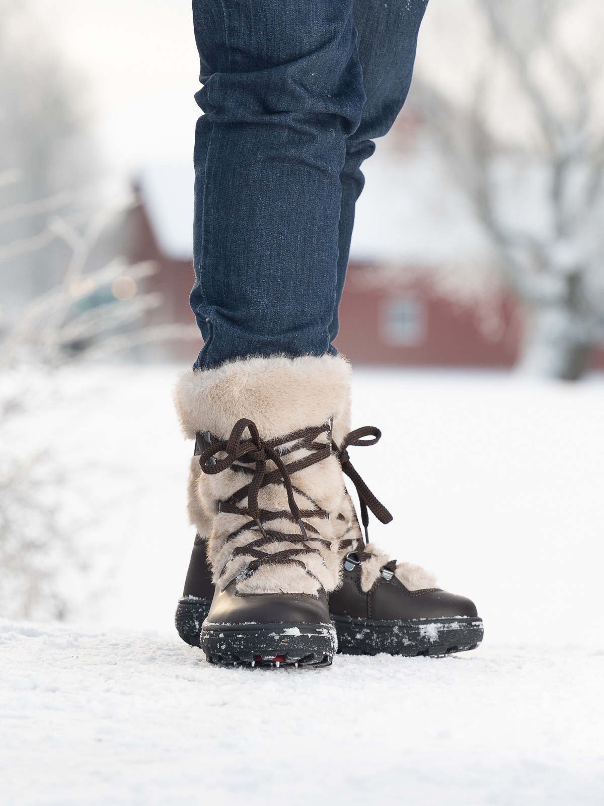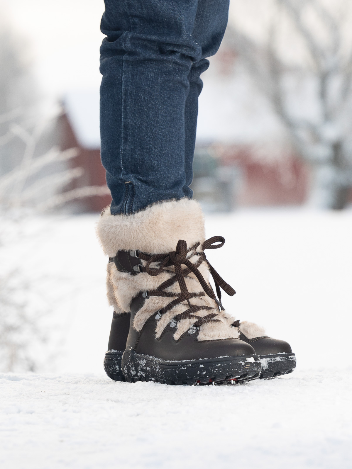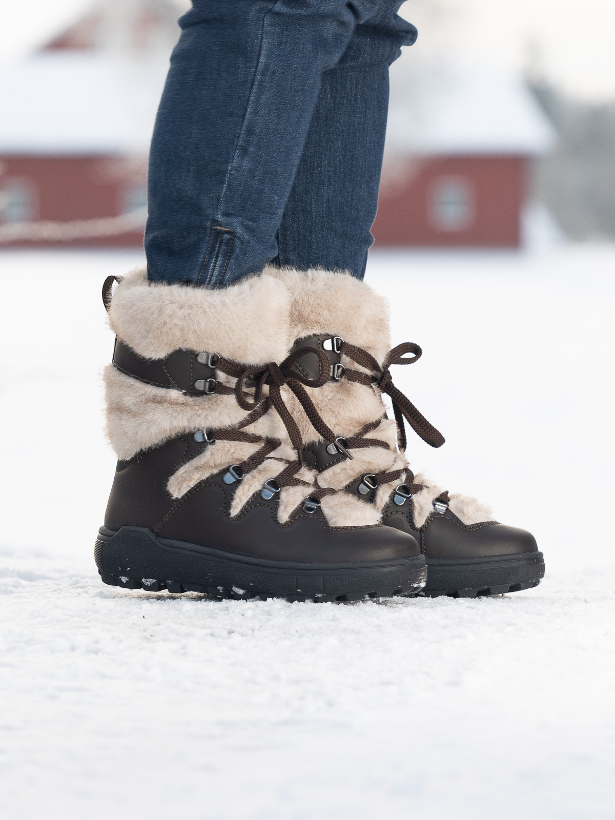 Skoen er kledd i ekte skinn som gir et eksklusivt uttrykk og økt slitestyrke, mens det varme, myke fôret sørger for komfort og isolasjon selv på de kaldeste dagene.