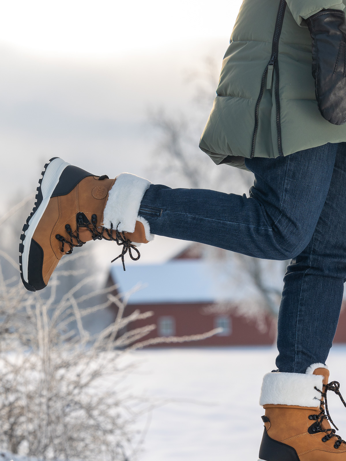 Med en kraftig yttersåle med grovt mønster får du godt grep på vinterføre, mens den lette, dempede mellomsålen sørger for komfort hele dagen – perfekt til både hverdagsbruk og aktive vinterdager.